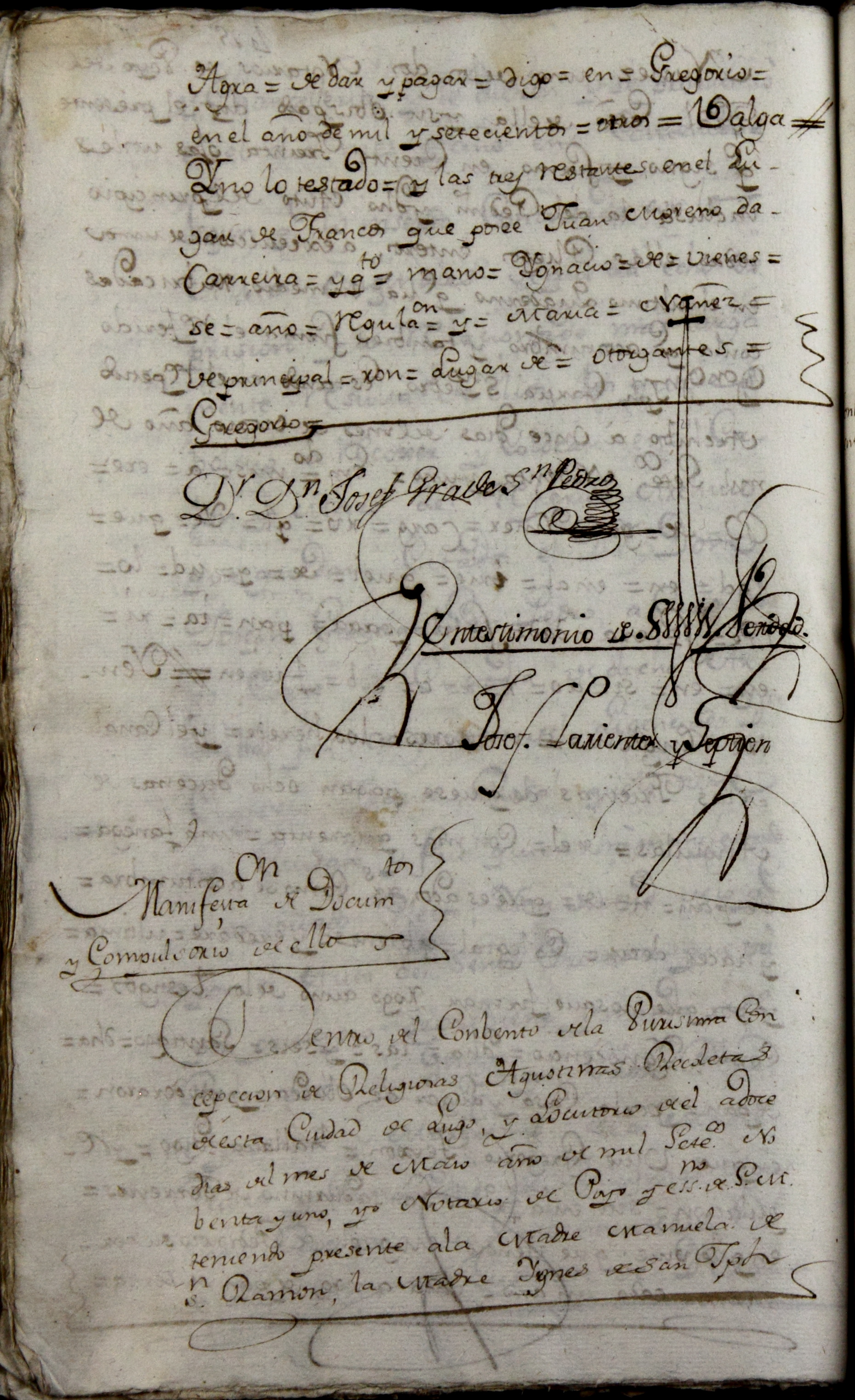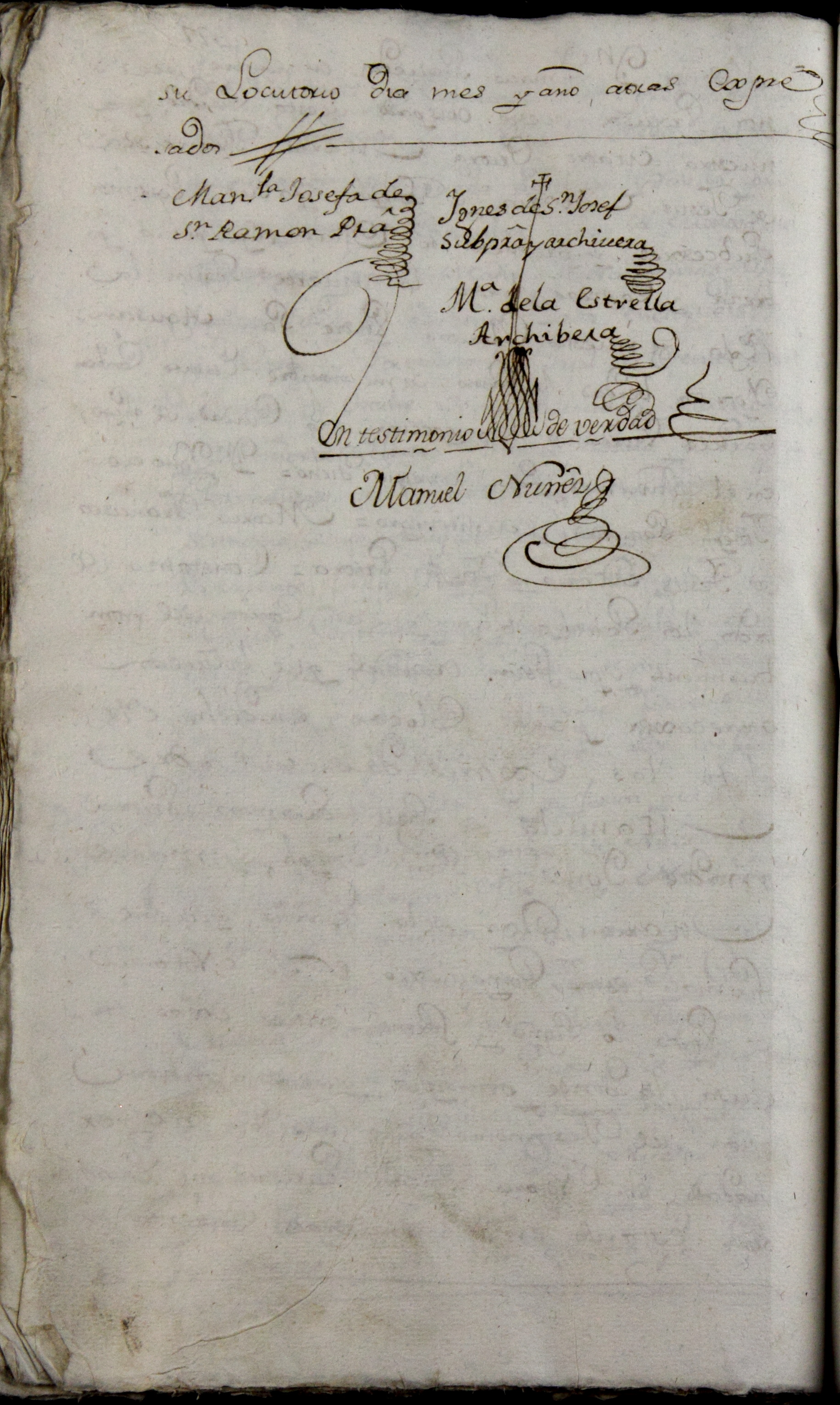 “Dentro del conbento de la Purísima Concepción de religiosas agustinas recoletas de esta ciudad de Lugo y locutorio de él, a doce días del mes de maio , año de mil setecientos nobenta y uno, yo, Notario de Poyo y escribano de Su Majestad, teniendo presente a la madre Manuela de San Ramón, la madre Ygnés de San Joseph y la madre María Rosa de la Estrella, la primera Priora y las dos Archiveras de este dicho Conbento, les puse de manifiesto el auto del señor Provisor con que principia el testimonio antecedente, y en su conformidad, haviendo reconocido el Archivo de esta comunidad en él hallaron y me han puesto presente el nombramiento, que su tenor dice así: