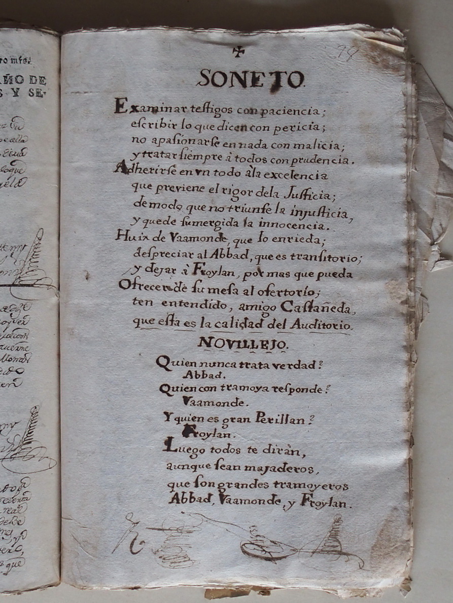 Este soneto, e os versos que o acompañan, forma parte dun longo e ruidoso preito que enfrontou a Pedro Domingo Sánchez Vaamonde, escribán da Real Audiencia de Galicia, co provisor (xuíz eclesiástico) da cidade de Ourense por cuestións de xurisdición entre os anos 1765 e 1778. É dicir, ao poder da Coroa, representado pola Real Audiencia, co poder da Igrexa. Algo nada infrecuente durante o Antigo Réxime (antes do século XIX).